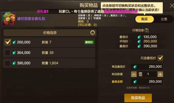在刚开服的时候新春套在拍卖行的最低价格是13万泰拉,最高是39万泰拉,平均价格是26万泰拉。按照大家以往的经验,一般刚开服的时候这时装礼包的价格是最贵的,于是有不少玩家刚开服就以26万泰拉的价格出售新春套了。这也是导致刚开服的时候新春套的价格并不高,本以为这次新春套的价格还会继续下降的,但没想到仅仅相隔一天,这新春套价格就迎来了巨大的变化。