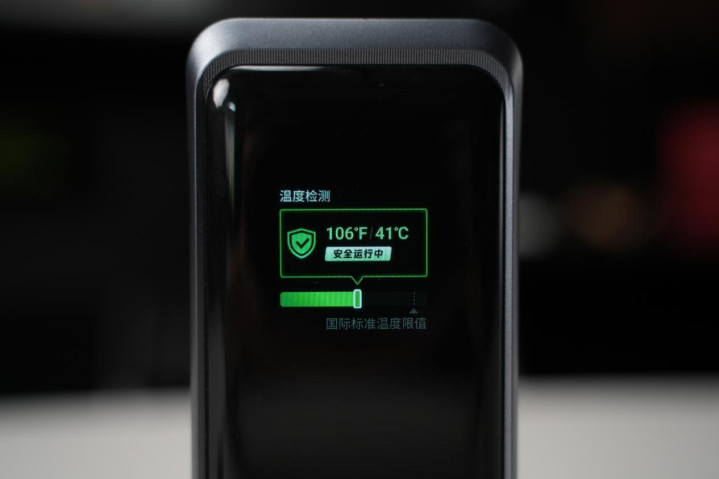 而在后续的测试中,我在仍是给MacBook Pro供电的情况下又给它加了部Windows游戏本和一台手机。此时充电宝的智能分派战略开动介入,给游戏天职派了100W输出(游戏本C供词电上限),而手机则是激活了18W的快充条约,总输出功率在245W到250W之间浮动。不息十多分钟后外壳温度仅41度,离海外安全规范端正的77度上限仍有很大差距。