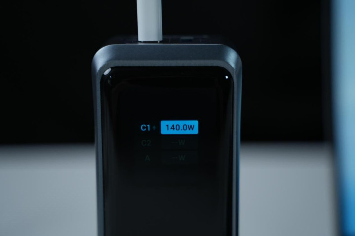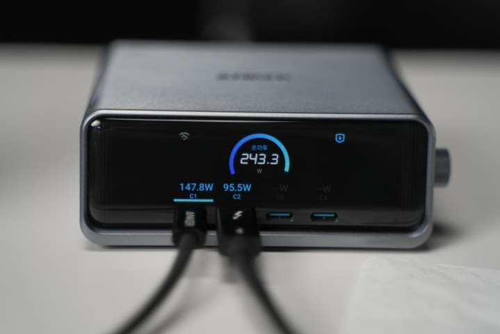 如果你认为150W的充电速率还不够快,那么也可以再加个安克充电器,通过有线方式接入顶部的C口,最高可以让充电宝的充电功率飙到250W,13分钟就能把电量充到50%,即使临外出才想起来要充电也不贻误之后的出行。