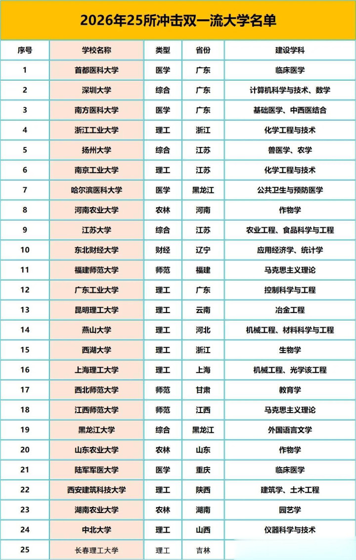 从现时各省的官方表态来看,现时有25所高校照旧具备冲击双一流高校的实力,何况照旧赢得各省政府重心救济,相等值得期待。