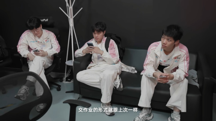 BLG教练组所谓的交作业,就是让选手在每天比赛结束之后,把自己对于比赛的感觉,要改变的东西和不足的地方都整理出来交给教练,教练根据情况做出调整,这样每场比赛结束之后选手都能有所收获。