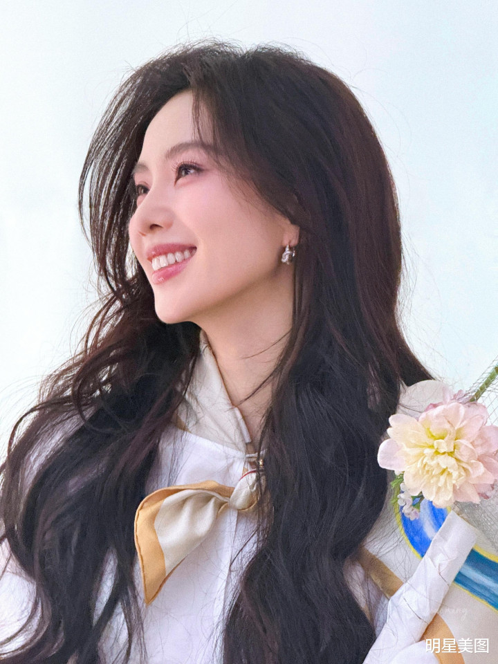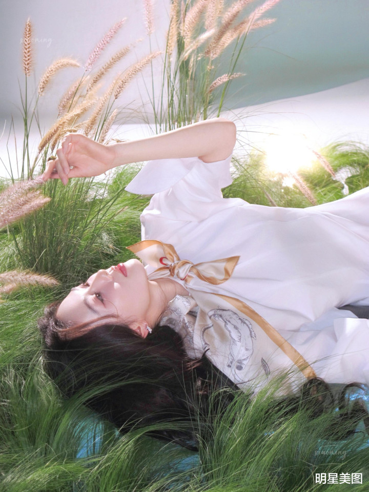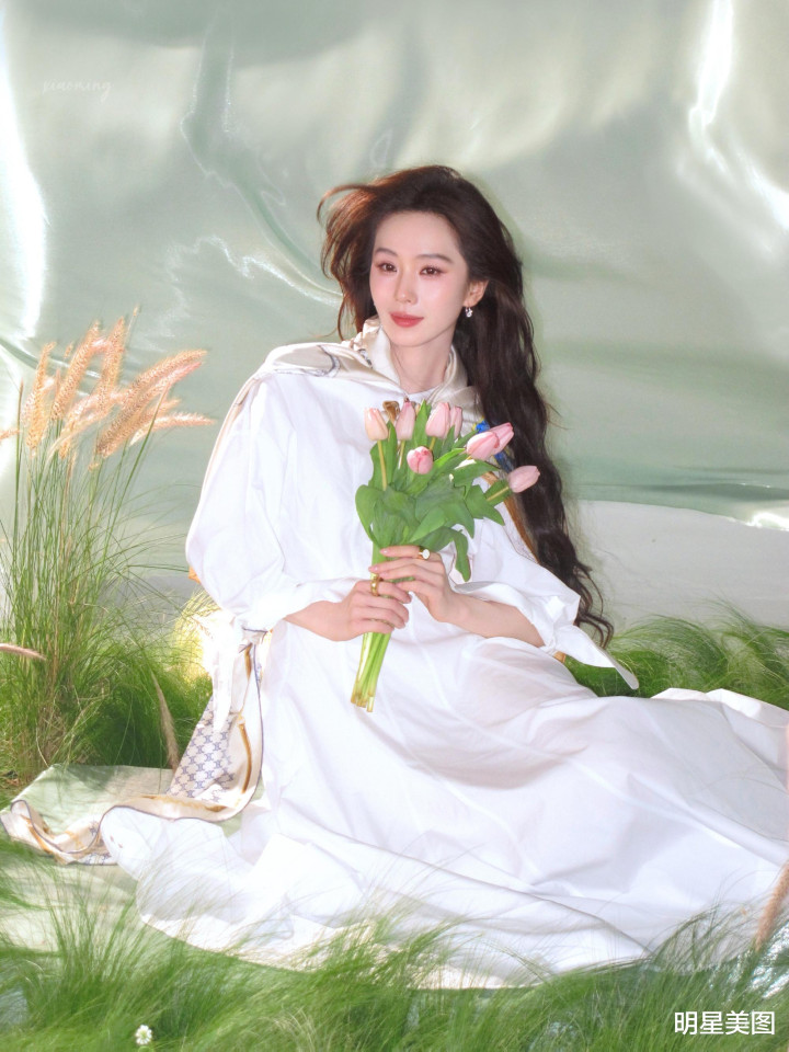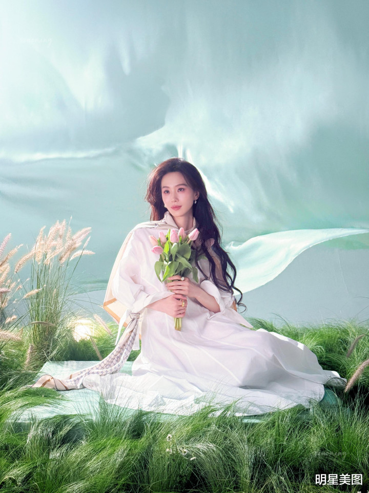 刘诗诗从春日里走来,风掠过发梢裙摆轻扬,郁金香祥和成唐突旁白
