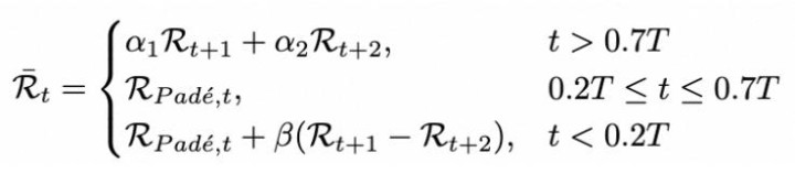 在此基础上,TC-Padé 使用 Padé 迫临替代传统的泰勒多项式张开。Padé 迫临采取 “分子多项式 / 分母多项式” 的有理函数方式,或者更好地形色非线性变化、渐近行径和阶段切换,因此在低步数、大跨度时候闭幕下具有更好的领略性。其一般方式为: